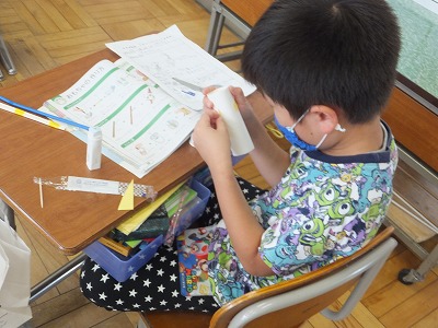 生活科で2年生との交流に向けて、動くおもちゃを作っています。