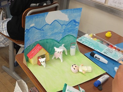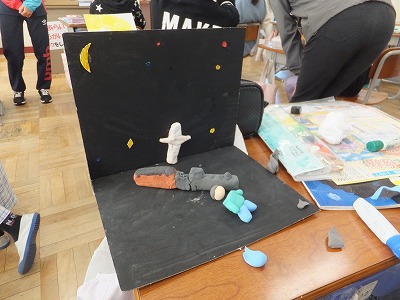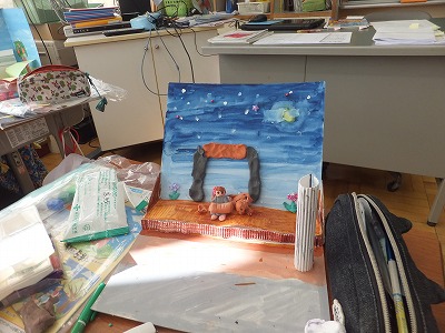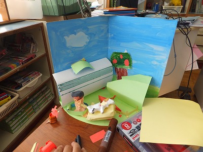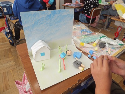 粘土で登場する人や動物などを作り始めたら、凝り始めて予想以上に時間がかかっていますが、とても楽しそうです。