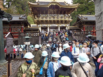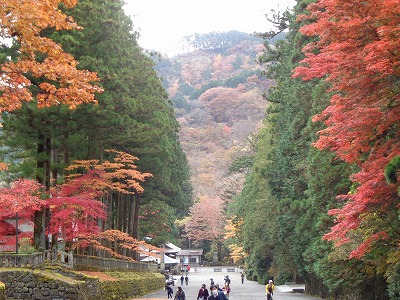 東照宮参道は、見事な紅葉でした。延期したために見ることができた景色です。