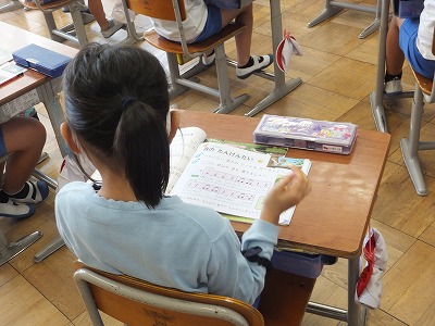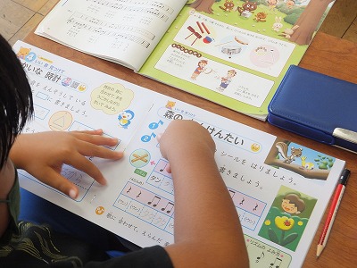 歌ったり、鍵盤ハーモニカを吹いたりできないので、テレビを見ながらの学習です。