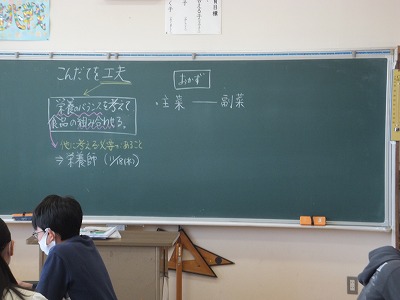 家庭科では、栄養のバランスを考え、献立を工夫する学習をしています。