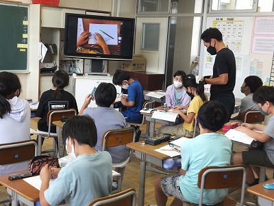 手元を撮影しながら、やり方の手順を発表してもらっています。