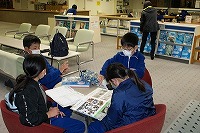 夕食後は、海の展示館や図書室で調べ学習です。