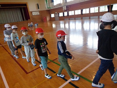 体育館でボール遊びをしました。今日は、ボールを投げたり、キャッチしたりする運動です。