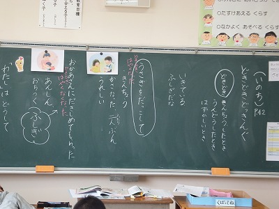 授業では、「自分や人や動植物が生きているんだな。」と感じた時のことを伝え合いました。他の生物にも命があり、どんな命でも大切にしようということを学びました。