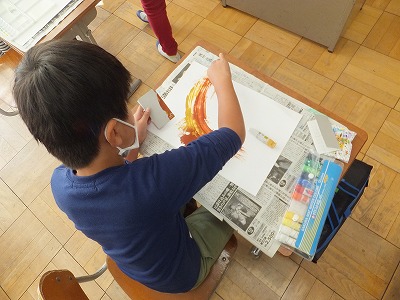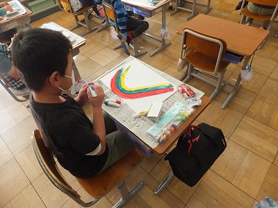 今日は1組が、えのぐひっぱレインボーをやりました。
