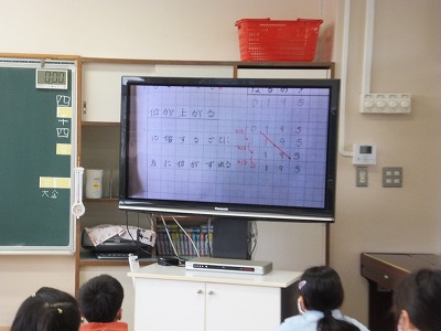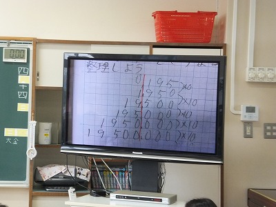 算数の時間は、小数点の10倍、100倍するとどうなるかについて学習しました。