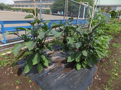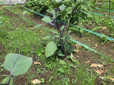 ナスには、花も咲き、実もなっています。