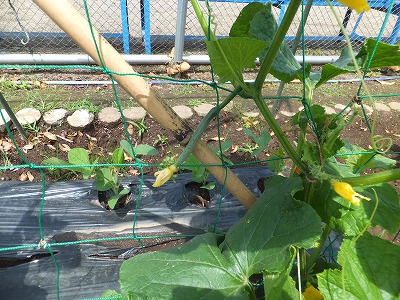 かがやきの農園では、小さなキュウリが生っています。