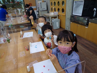 暗闇できれいに光るランプを見て、子供たちは大喜びでした。