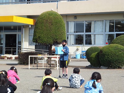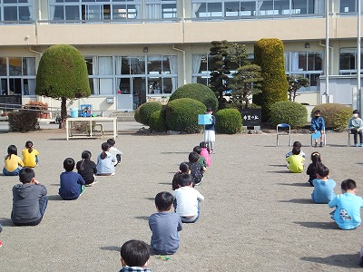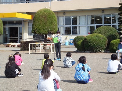きちんと座りながら話を聞いている子供たち。素晴らしいです。