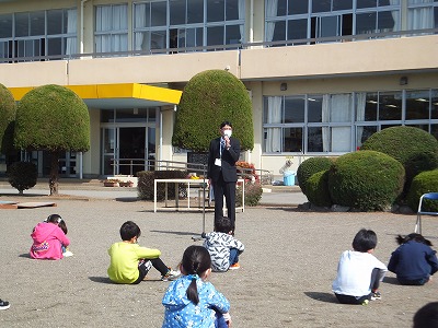 子供たちには、創立40周年を迎える本郷北小学校をさらにすばらしい学校にするために、上記の「本気な姿がたくさん見られる本北小」にしましょう。それから、「明るく いつでも 先に 伝える あいさつ」をしましょう。と話しました。