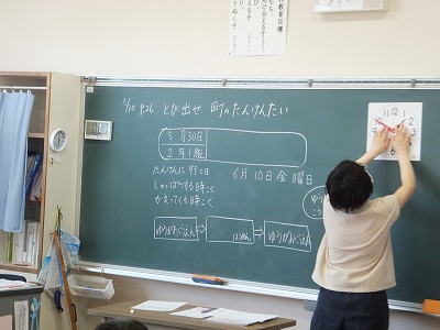 ワークシートに書いたあと、黒板に振り返りを書きました。