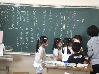 ワークシートに書いたあと、黒板に振り返りを書きました。