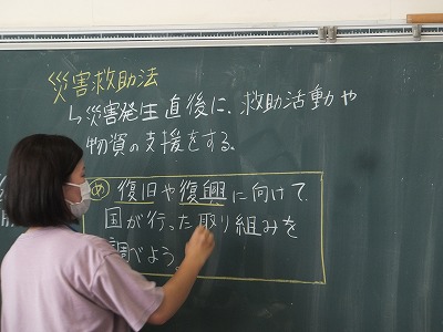 社会科で、災害救助法について学習しました。