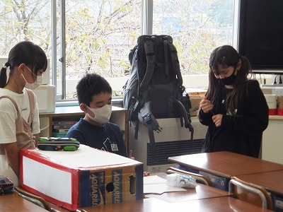 宝は、子供たちが折った折り紙です。教室のいろいろなところに隠しました。