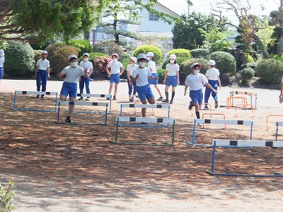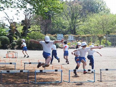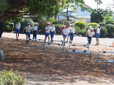 ハードル走の練習をしました。