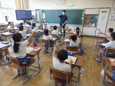 本当はペアでやるところですが、今日は先生とじゃんけんしてゴールを目指します。