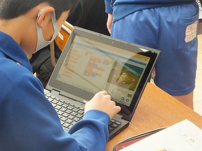 休み時間にスクラッチ(プログラミングソフト)で遊んでいました。