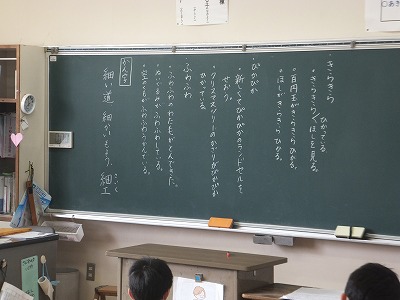 ワークシートに書いたあと、黒板に振り返りを書きました。