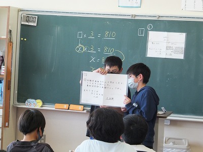 ワークシートに書いたあと、黒板に振り返りを書きました。