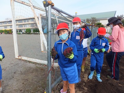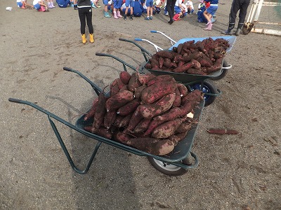 みんなで協力してたくさん穫れました。持ち帰らせましたので、お子さんと一緒に召し上がってください。