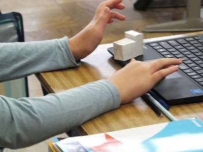 点を中心に、図形の拡大図や縮図をかく練習をしています。