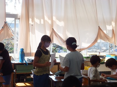 宝は、子供たちが折った折り紙です。教室のいろいろなところに隠しました。