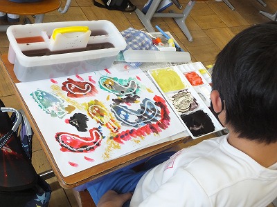版画もいよいよ刷りに入りました。終わった子は、デザインをやっています。