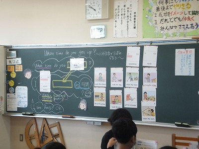 いろいろな活動を何時にしているかを英語で尋ね合う学習をしました。