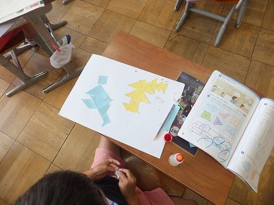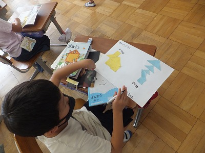 宝は、子供たちが折った折り紙です。教室のいろいろなところに隠しました。