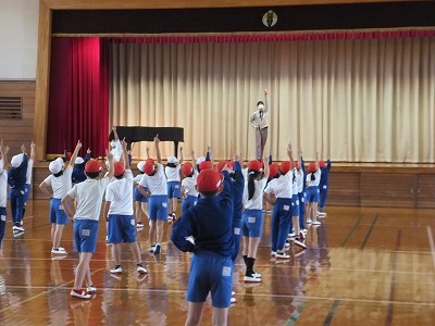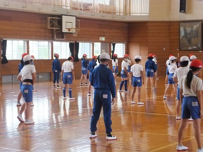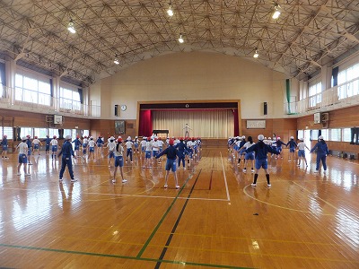グランドコンディションが良くなかったので、体育館でリレーをしました。