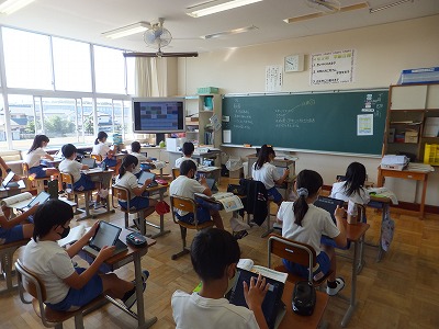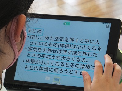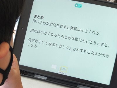 今日は、まとめをタブレットに書き込んで、みんなで共有しました。