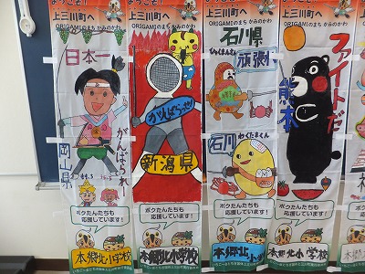 来年の国体に向けて、他県からくる選手を歓迎するためののぼり旗が完成しました。