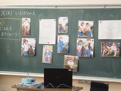 先日のサツマイモの収穫を思い出して、絵を描きます。