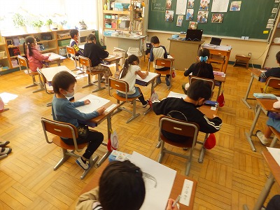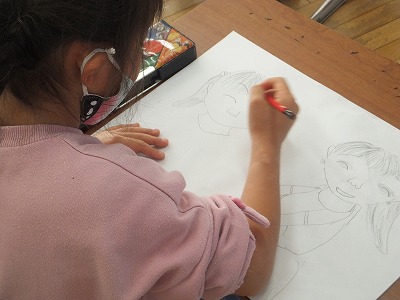 その時の様子を思い出し、自分を主役に絵を描きます。