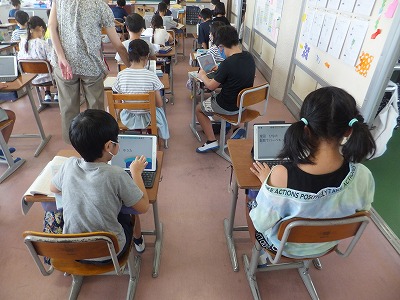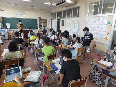 3年生でもオンライン授業ができるように、iPadを使って練習しました。