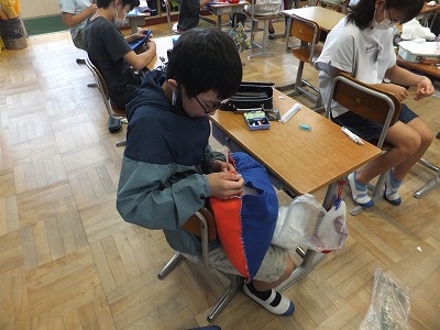 家庭科の時間に前回に引き続き小物を作りました。