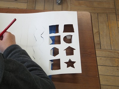 今日は、実際にカッターを使って、紙を切る練習をしました。