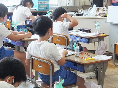 輪ゴムを鳴らすので、いい音とまではいきませんでしたが、自分の作った楽器で嬉しそうに音を出していました。