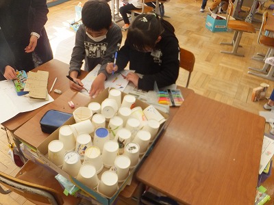 版画もいよいよ刷りに入りました。終わった子は、デザインをやっています。