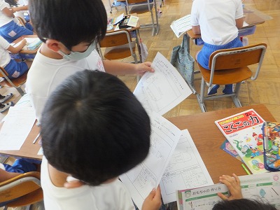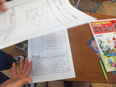今日は、設計図の段階ですが、1年生に喜んでもらえるようにしっかりと作りましょうね。