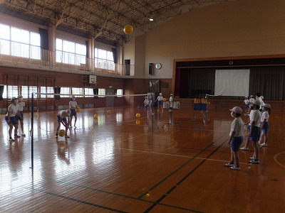 今まで使っていたボールからソフトバレーボールに替えて練習しています。