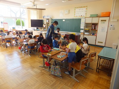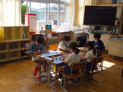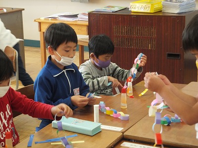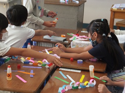 今日は、2組が運動会に向けて輪飾りを作りました。
