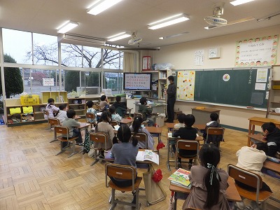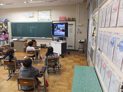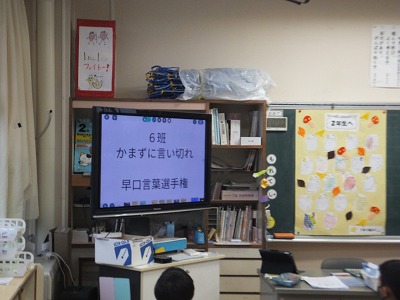 今日の朝会は、児童集会でどんなことをやるか、6年生が作った動画を見ました。