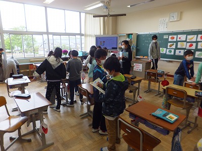 宝は、子供たちが折った折り紙です。教室のいろいろなところに隠しました。