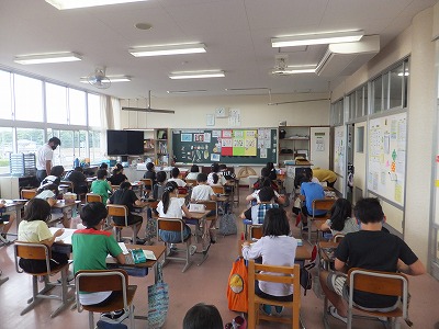 今日は、給食センターから学校栄養士に来ていただき食育の授業を行いました。