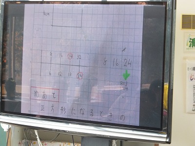 縦6㎝と横8㎝の長方形のタイルを敷き詰めて、正方形を作るには?