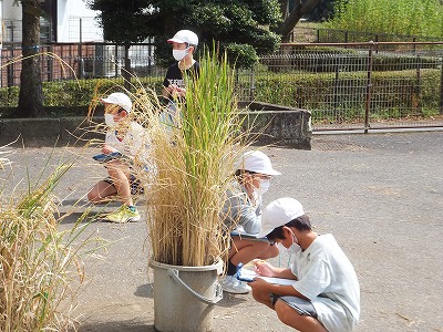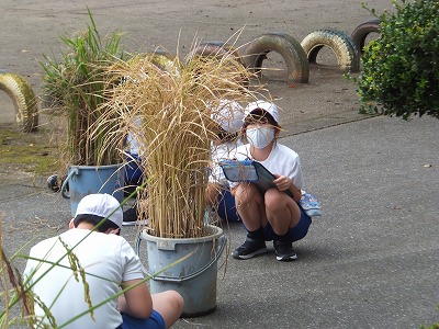 みんなよく観察してますね。明日はどのくらいお米が収穫できるかな?