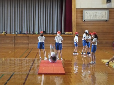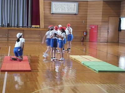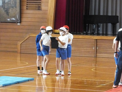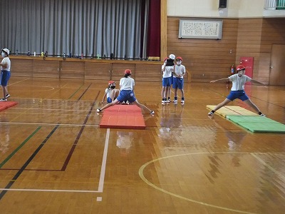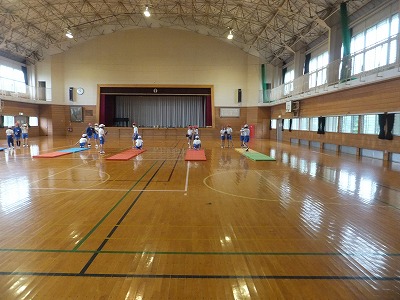 グランドコンディションが良くなかったので、体育館でリレーをしました。